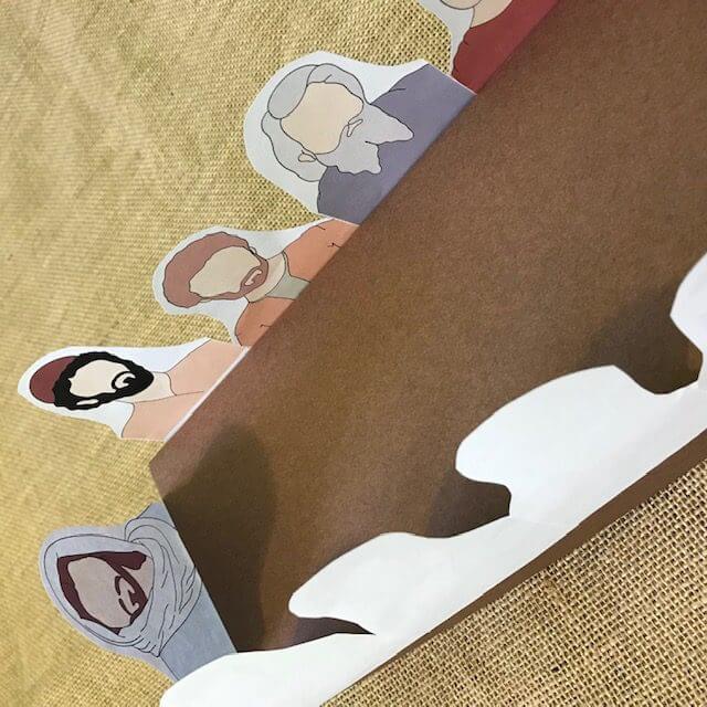 These are beautifully hand drawn by The Wood Coop. Use brown construction paper to recreate the last supper scene. Instructions for prep are on Instagram in the highlight bubble titled “week 22” or on your materials. My kids worked on these happily for a solid thirty minutes and it was joyous!