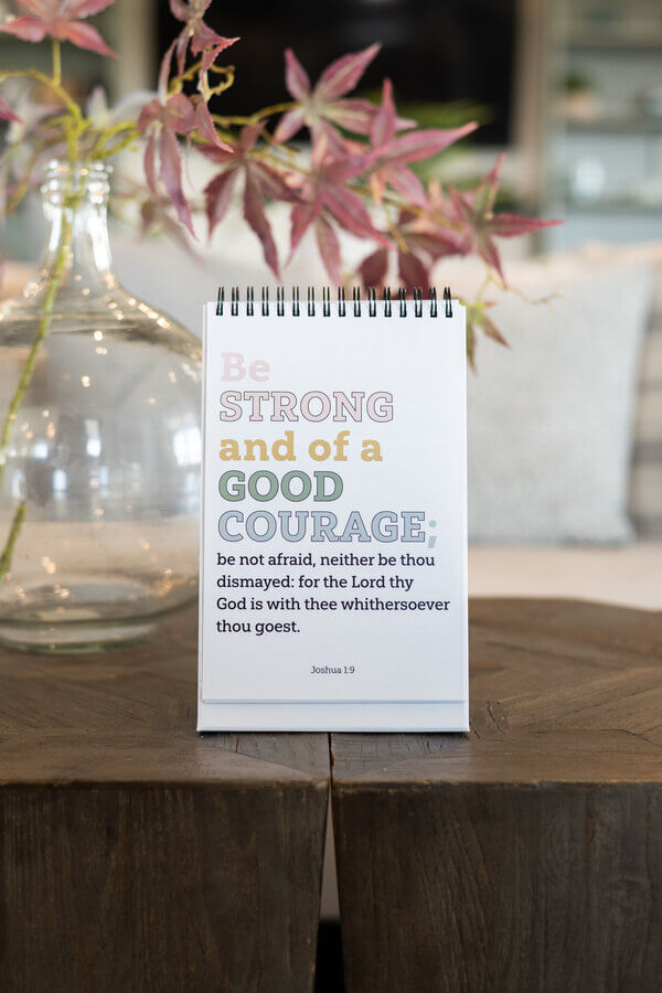 This standing flipbook is easy to keep visible in the home—place it on your kitchen table, nightstand, or entry shelf for daily inspiration.