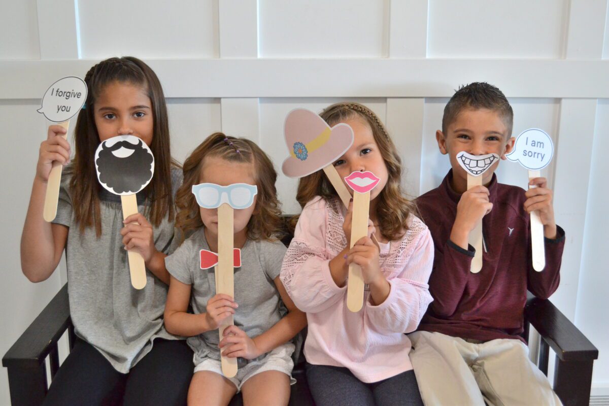 We are so excited about the lesson bundle this week! The photo props are adorable and a fun way to teach about forgiveness. We provide you with instructions for a dollar bill object lesson to teach your kids about their worth in God’s eyes. The coloring page presents a good opportunity to have a discussion about being honest. 2 Corinthians 5:17 talks about becoming a new creature through Christ. To teach this principle we included a hands on activity using pasta noodles to learn about the life cycle of a butterfly. There is also a chart to learn about being made new through Christ as well as a Mystery Scripture Story.