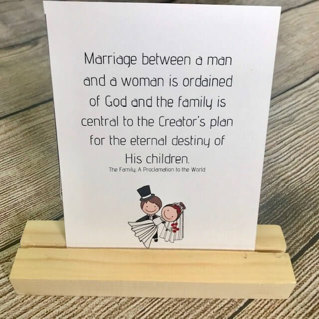 Each week I provide you with a full lesson plan for a main lesson during family home evening or Sunday study. At the bottom of your lesson plan are six boxes with other ideas. These are meant to be shorter activities that can be done each night during the week or added to your main lesson. I recommend you read them and try to use some of them this week to enrich your learning and study. One of the ideas in the bonus boxes this week is to teach about the plan of salvation using this poster as a tool. This will help children to understand why marriage between a man and woman is so important.