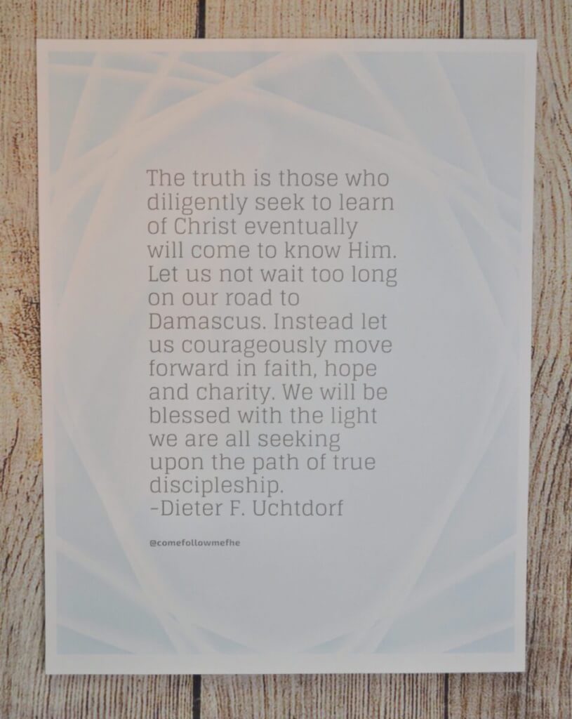 One of the things we love to include each week are inspirational quotes from our prophets that discuss the topic we are learning about in the Come Follow Me manual. These two beautiful prints are in your lesson this week. I love to display mine in our home. Plus I found the perfect frame to use that allows me to easily switch prints each week.